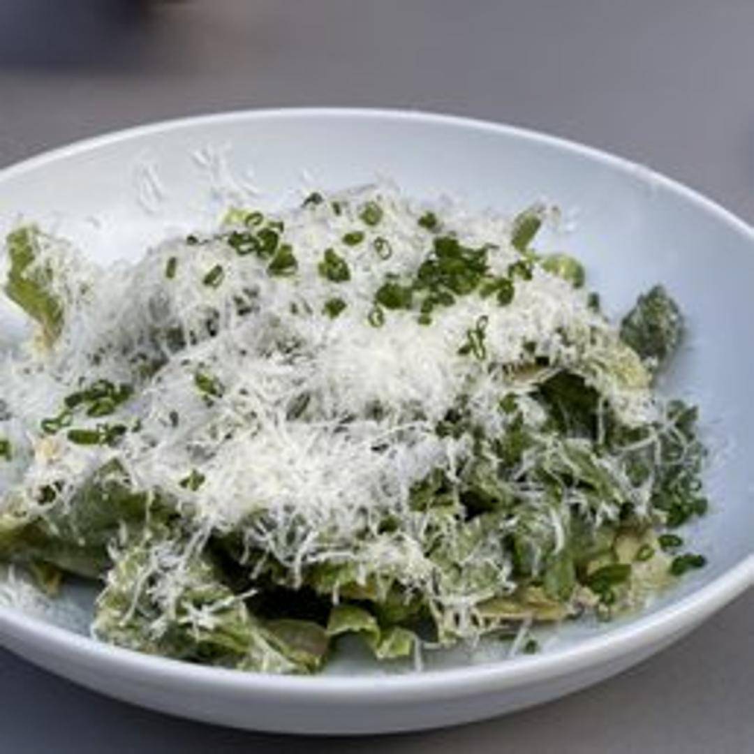 Classic Caesar salad featuring crisp romaine lettuce, parmesan cheese, and crunchy croutons. Tossed in a creamy and tangy Caesar dressing made with anchovies, garlic, and lemon juice. May include optional additions like grilled chicken or shrimp.