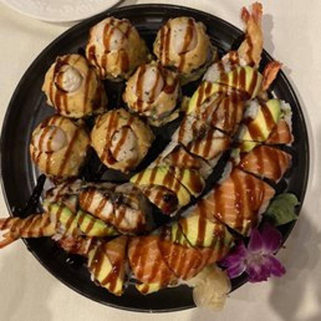 Crab mix, avocado, and cucumber inside, topped with white tuna and a special white sauce.