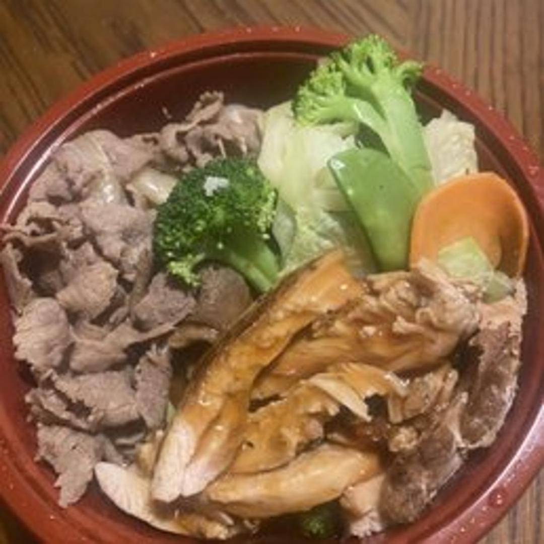A signature bowl featuring a bed of seasoned rice topped with your choice of protein (chicken, tofu, or beef), a vibrant mix of fresh vegetables, a soft boiled egg, and drizzled with our special Kokoro sauce.