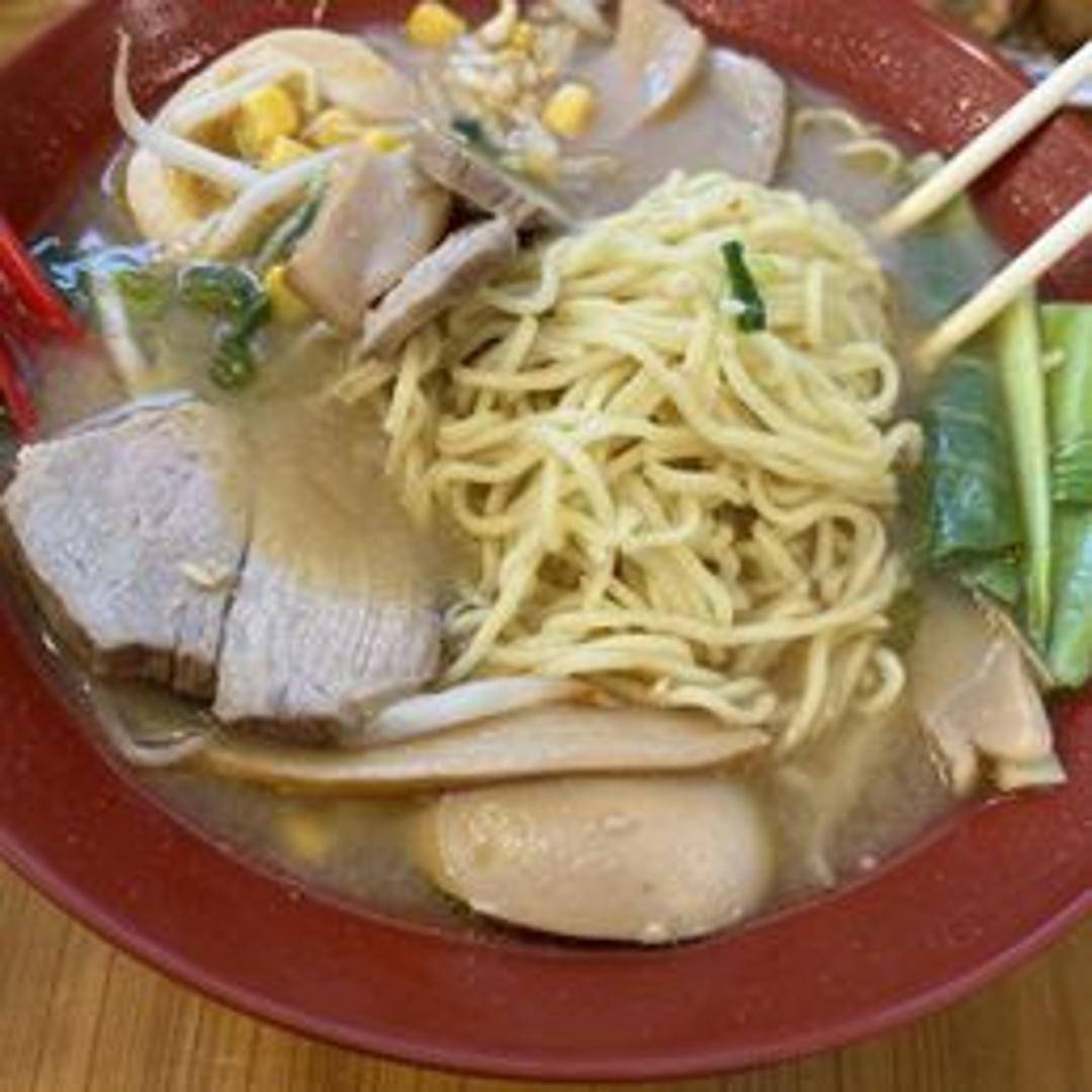 A flavorful ramen dish with a rich miso-based broth, noodles, and toppings such as pork belly (chashu), soft boiled egg, corn, bean sprouts, and seaweed.