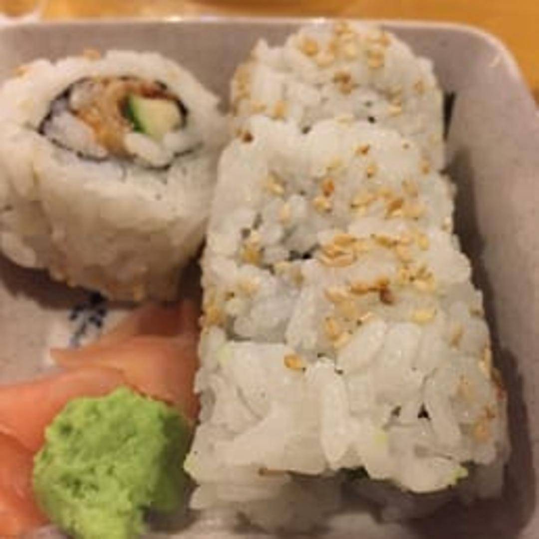 A sushi roll filled with grilled freshwater eel (unagi), avocado, and cucumber, typically drizzled with a sweet and savory unagi sauce. Wrapped in nori seaweed and sushi rice.