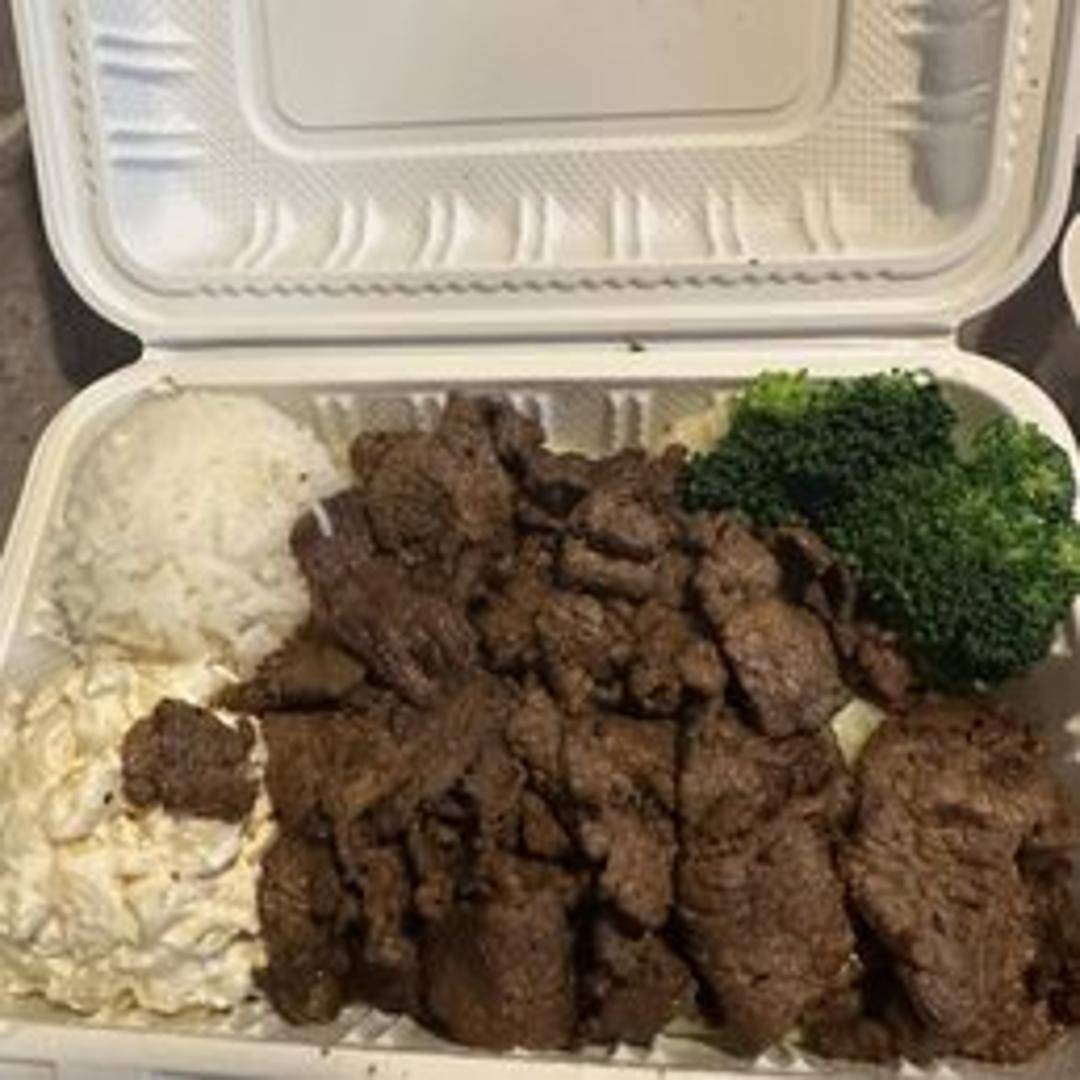 Thinly sliced beef marinated in our signature Hawaiian BBQ sauce and grilled to perfection. Served with steamed rice and macaroni salad.