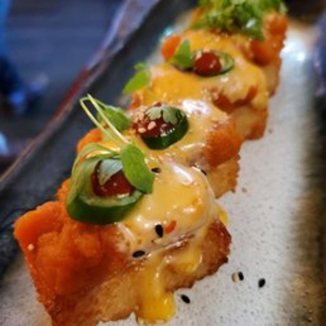 A classic and fiery sushi roll composed of fresh, finely chopped tuna expertly mixed with a vibrant spicy mayonnaise sauce. This popular choice for spice lovers is often elevated with a touch of chili oil or sriracha and can include delicate slices of cucumber or avocado for a refreshing contrast in texture, all encased in seasoned sushi rice and nori.