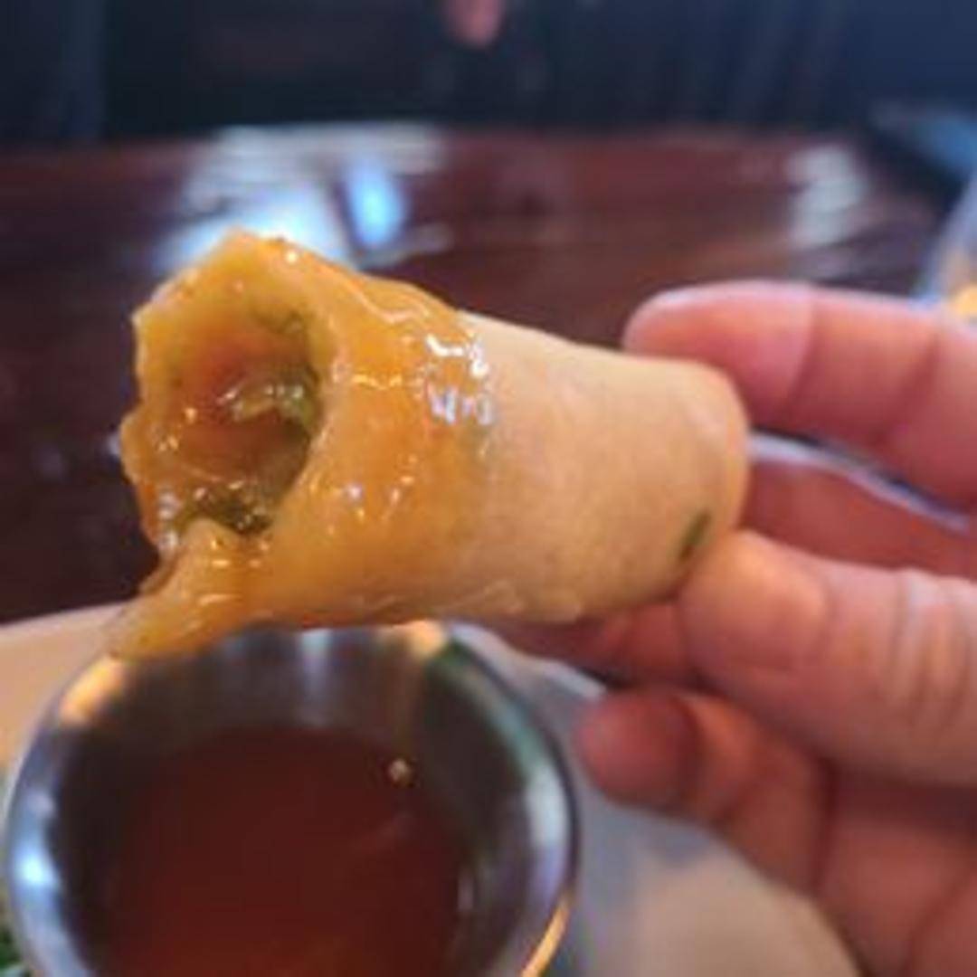 Crisp-fried rolls filled with a savory mixture of finely shredded vegetables, often including cabbage, carrots, and glass noodles. These golden-brown appetizers are typically served hot with a side of sweet and tangy dipping sauce, offering a delightful crunch with every bite.