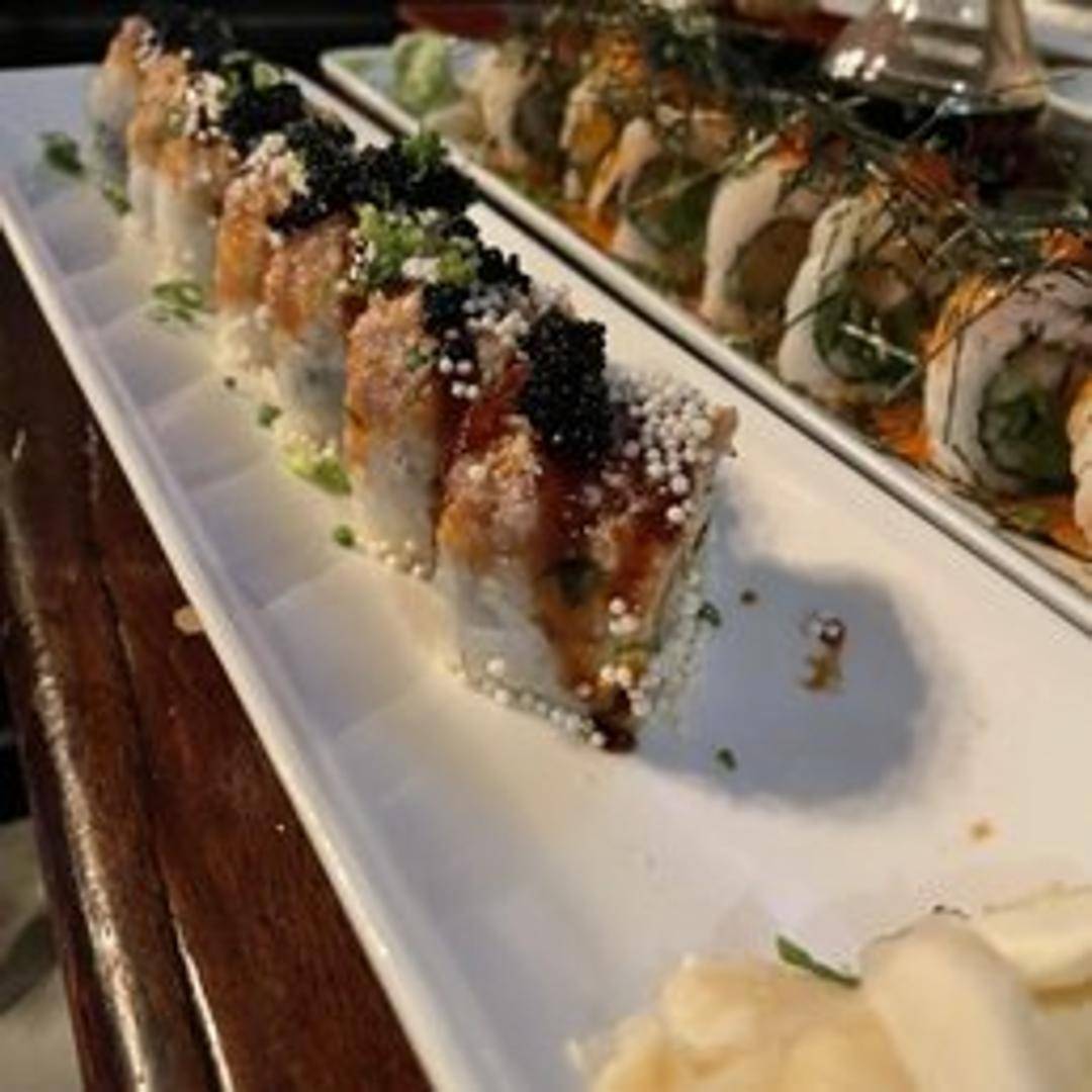 A premium signature sushi roll, crafted with an exceptional combination of fresh ingredients to offer a luxurious and satisfying experience. This roll likely features high-quality seafood, possibly including various types of fish or shellfish, complemented by carefully selected vegetables and a unique house sauce, delivering a rich and complex flavor profile.