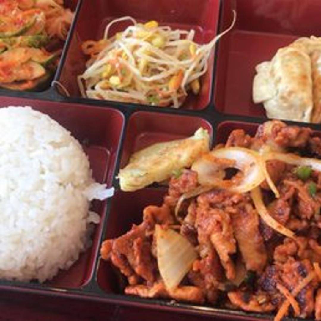 Lunch portion of thinly sliced pork marinated in a spicy gochujang-based sauce. Typically served with steamed rice and a selection of Korean side dishes (banchan).