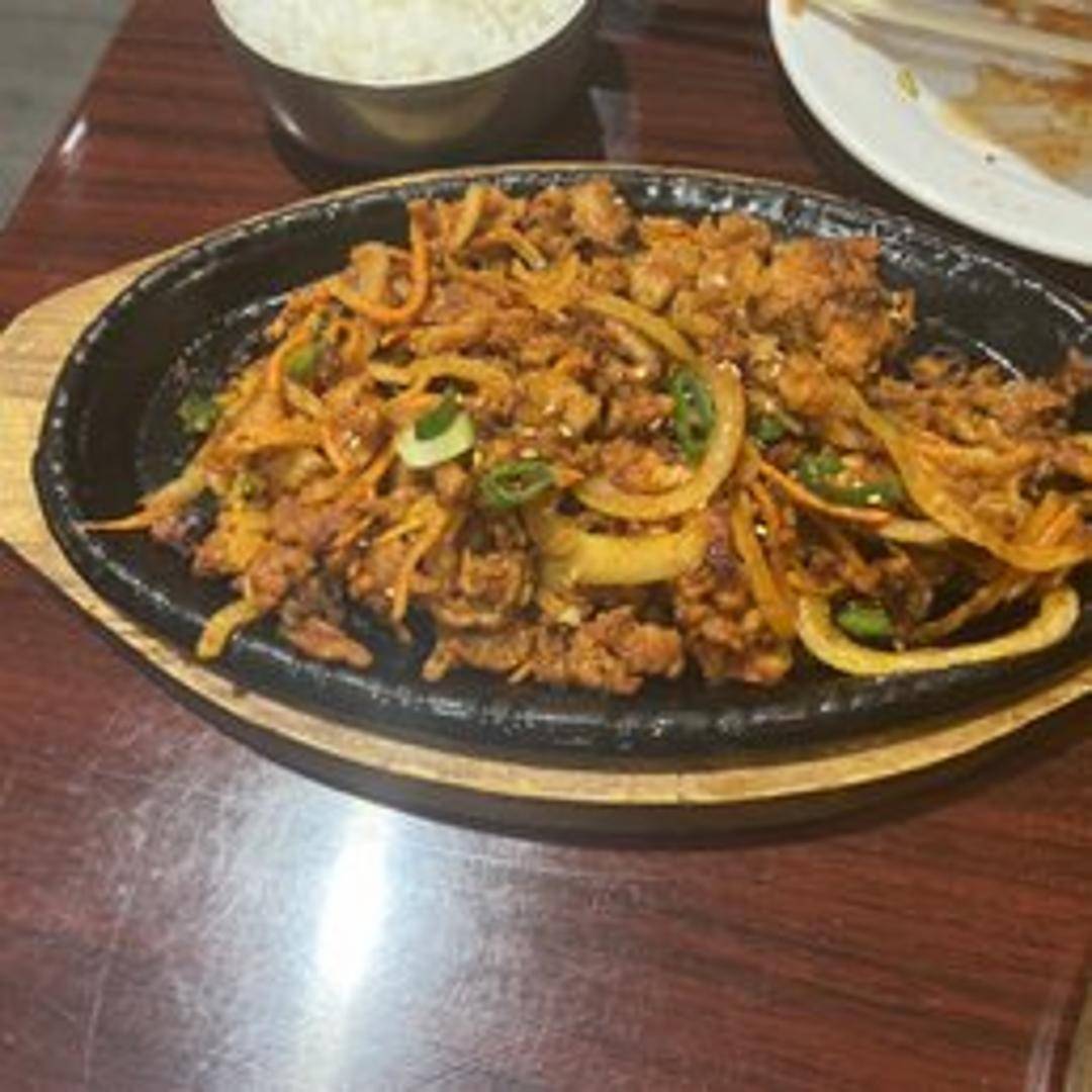 Thinly sliced pork marinated in a spicy gochujang-based sauce. Often grilled or pan-fried until tender and flavorful. Served with rice and Korean side dishes (banchan).