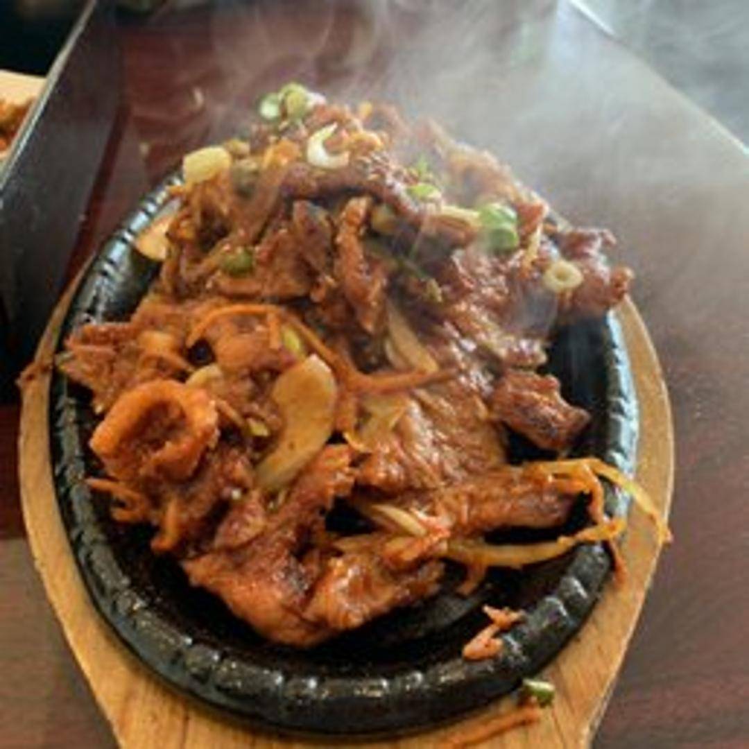 Thick slices of pork belly marinated in a spicy gochujang-based sauce. Often grilled or pan-fried until caramelized and tender. Usually served with lettuce wraps, ssamjang (a thick, spicy paste), and other accompaniments for wrapping and enjoying.