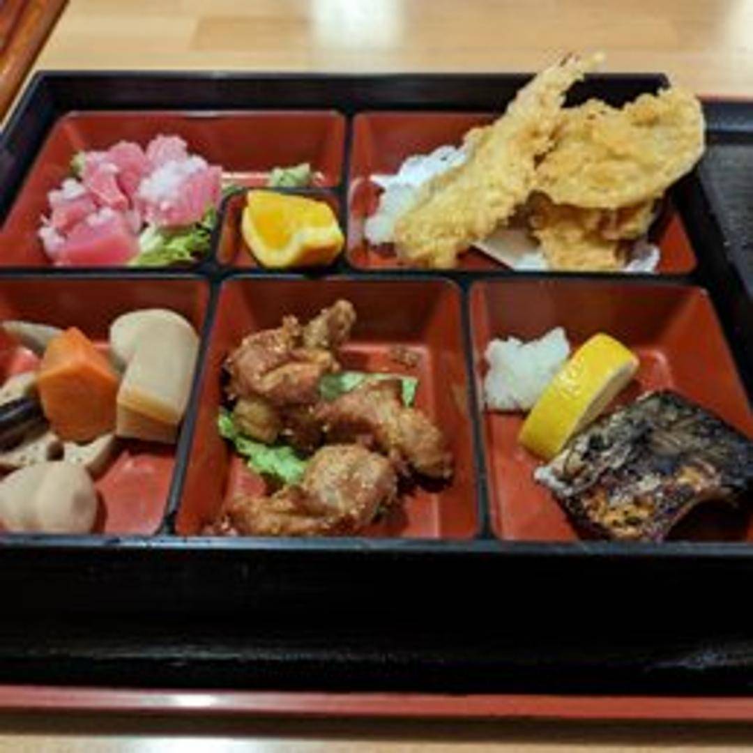 A complete and balanced Japanese meal served in a compartmentalized box. Typically includes a variety of dishes such as rice, grilled fish or meat, pickled vegetables, and other side dishes like tamagoyaki (rolled omelet). Contents may vary depending on the specific Bento offered.