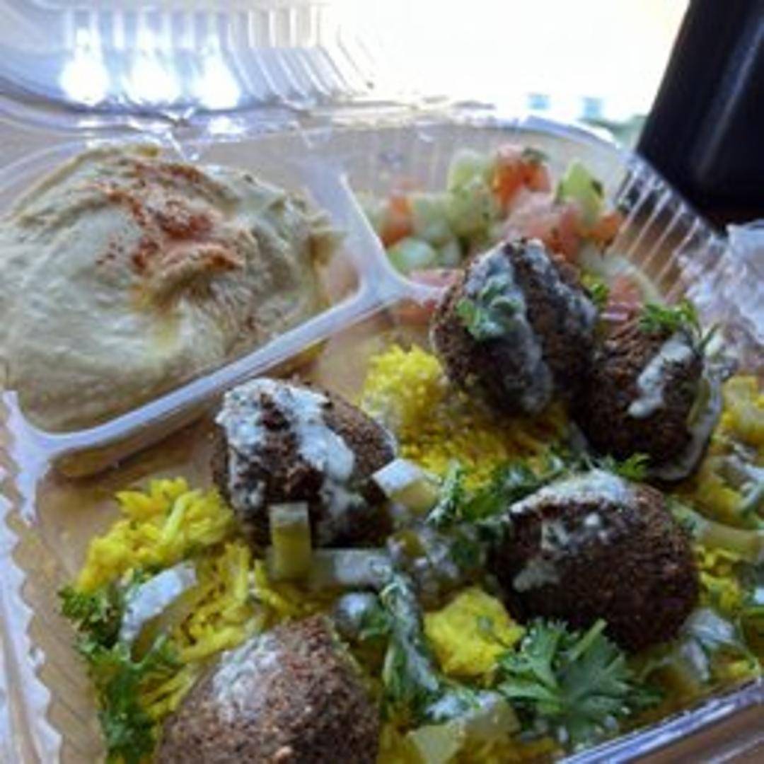 A delicious plate featuring crispy and flavorful falafel, made with ground chickpeas and a blend of herbs and spices. Served with a side of tahini sauce, hummus, fresh vegetables, and warm pita bread. A satisfying and vegetarian-friendly meal.