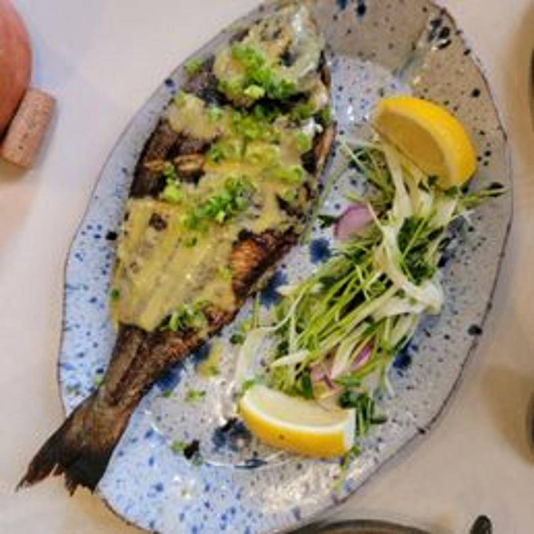 Fresh, pan-seared Sea Bream, seasoned with Mediterranean herbs and spices. Served with a side of seasonal vegetables and a lemon-olive oil dressing.