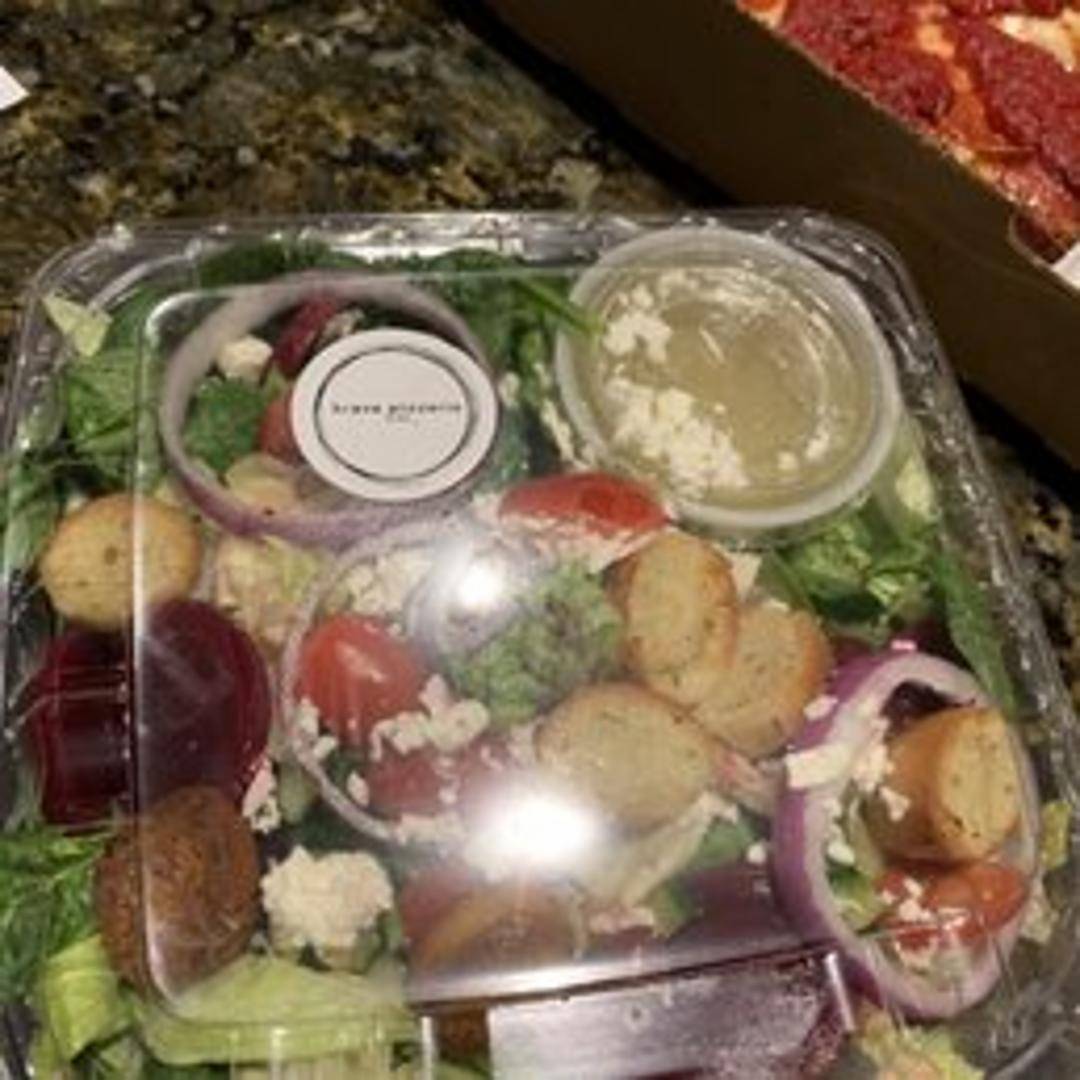 A refreshing salad with crisp lettuce, tomatoes, cucumbers, red onion, Kalamata olives, feta cheese, and a tangy Greek vinaigrette dressing.