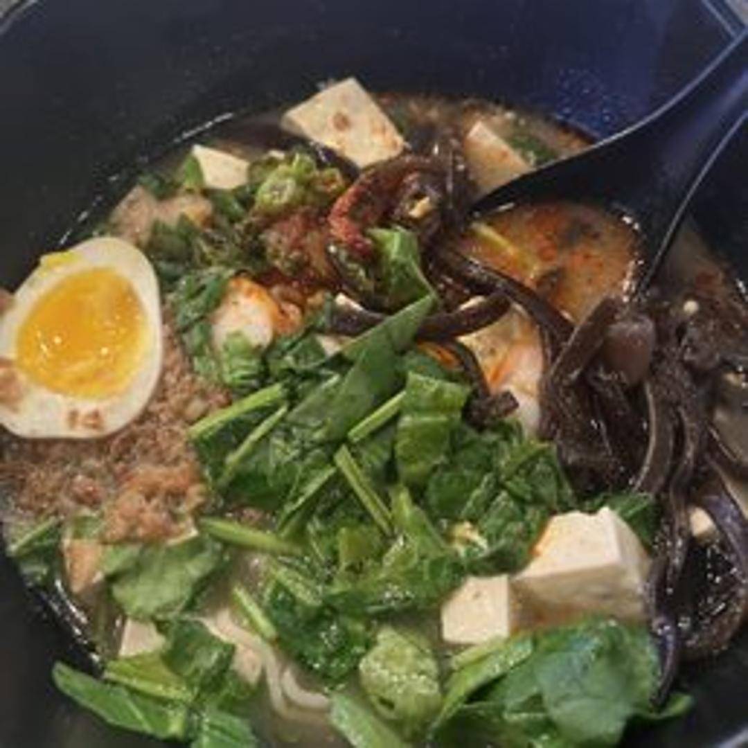 A flavorful and convenient meal featuring wheat noodles in a savory broth, seasoned with shrimp and aromatic spices. Contains dried shrimp and vegetables for added texture and flavor. Easy to prepare and perfect for a quick lunch or dinner.