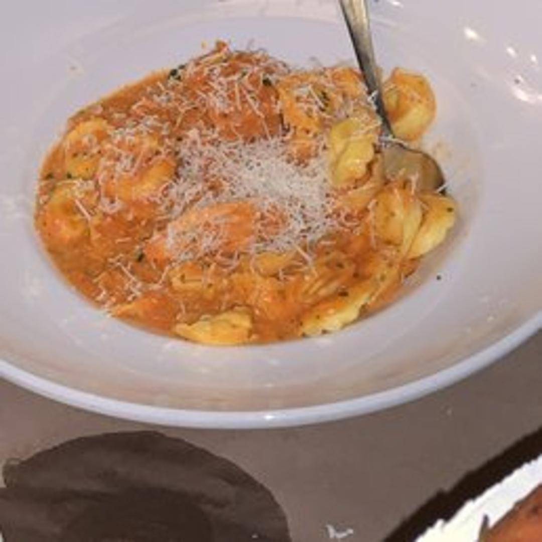 Cheese-filled tortellini pasta tossed in a creamy Alfredo sauce with grilled chicken, spinach, and sun-dried tomatoes.