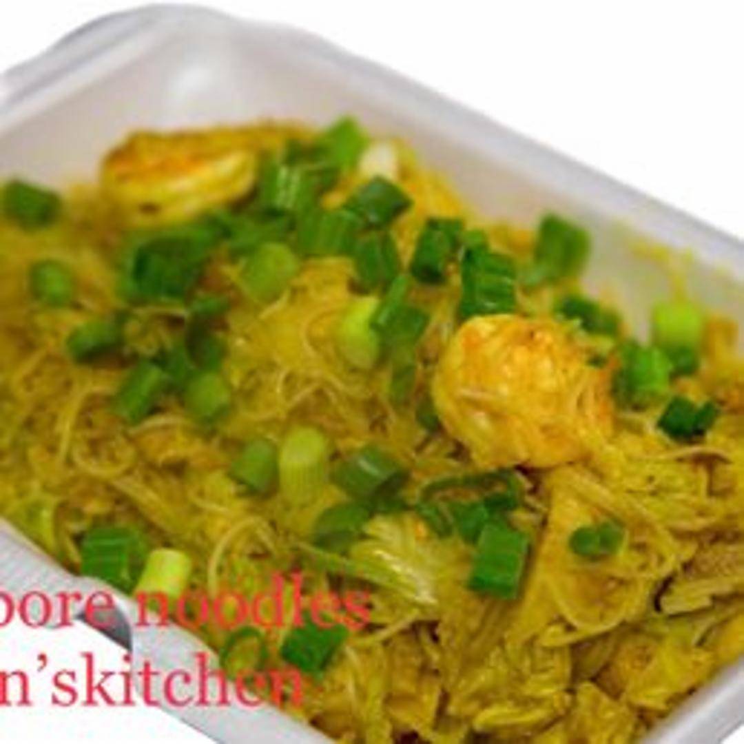 Thin rice noodles stir-fried with shrimp, pork, vegetables (such as bell peppers, onions, and bean sprouts), and curry powder, giving it a distinctive yellow color and savory, slightly spicy flavor.