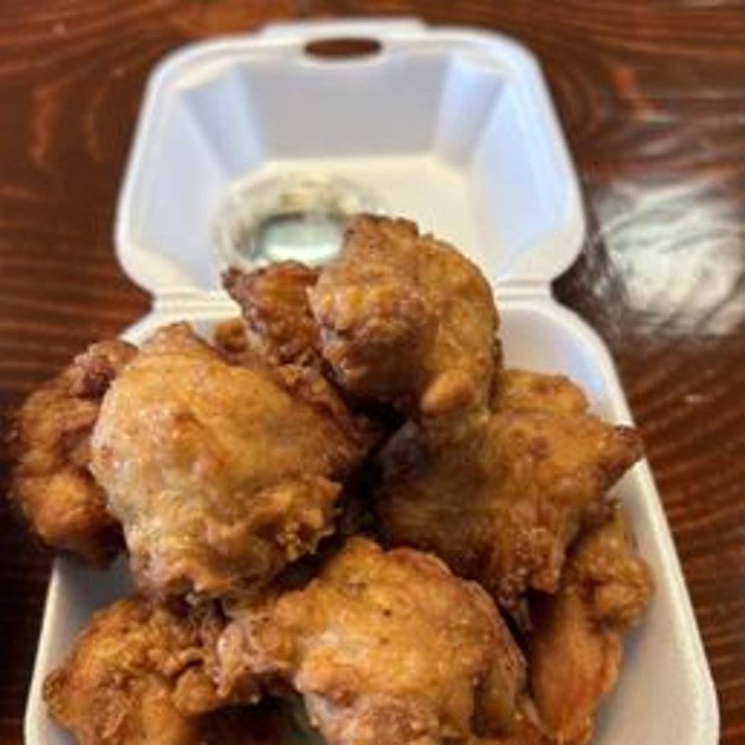 Japanese fried chicken, marinated in soy sauce, ginger, and garlic, then coated in potato starch for a crispy and flavorful experience. Served with a dipping sauce.