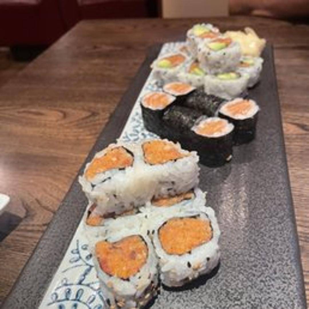 A popular and zesty sushi roll made with finely diced fresh tuna, mixed with a fiery and flavorful spicy mayonnaise or chili sauce for a satisfying kick. Often combined with thinly sliced cucumber or scallions for added texture, rolled with seasoned sushi rice and nori (seaweed), and served as a beloved classic for those who enjoy a bit of heat.