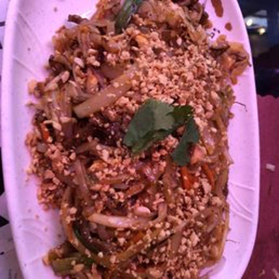 Experience the vibrant and balanced flavors of Thailand with this classic stir-fried noodle dish. Pad Thai features thin rice noodles wok-tossed with scrambled eggs, firm tofu, crunchy bean sprouts, and a medley of other fresh ingredients, all coated in a signature sweet, sour, and savory tamarind-based sauce. Finished with a sprinkle of crushed peanuts and a wedge of lime, it's a harmonious blend of textures and tastes.