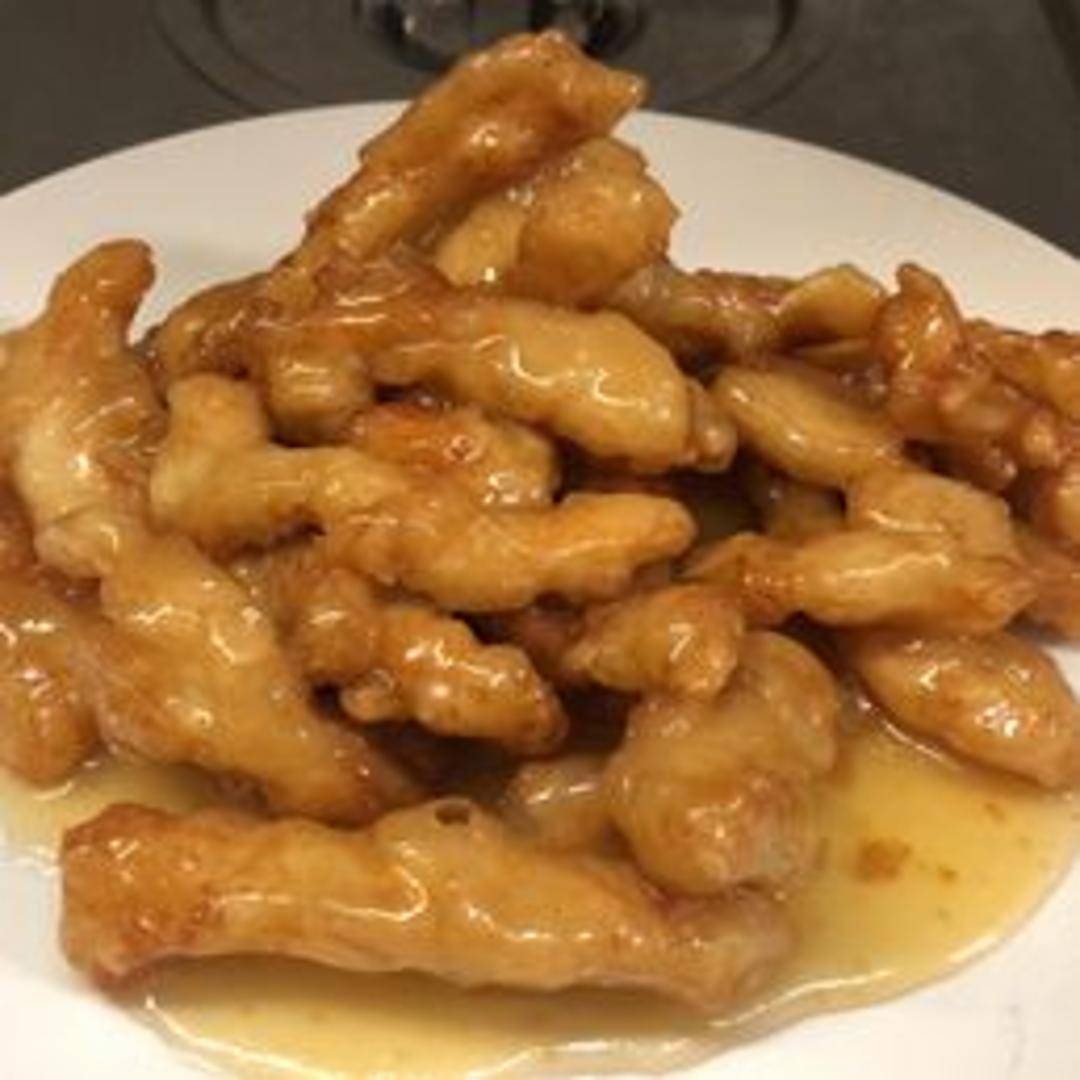 Crispy, golden-fried chicken cutlets coated in a tangy and bright lemon sauce. Served hot and perfect over rice or noodles. Features a balance of sweet and sour flavors with a zesty lemon aroma. Garnished with lemon wedges for an extra burst of citrus.