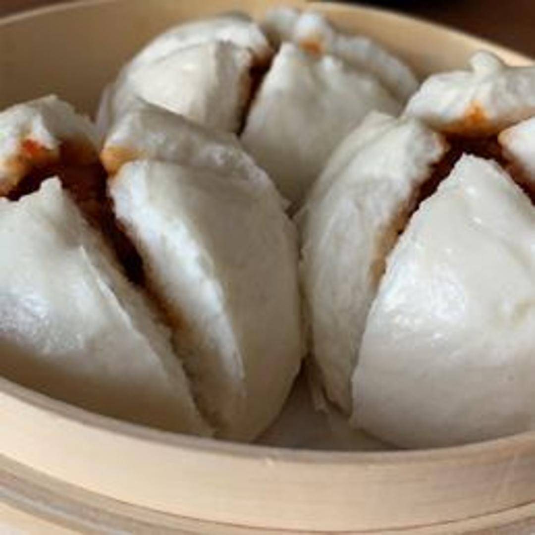 Tender slices of roasted pork marinated in a sweet and savory barbecue sauce. The pork is typically characterized by its reddish-brown glazed exterior and flavorful, juicy interior. Often served as an appetizer or alongside rice and vegetables.