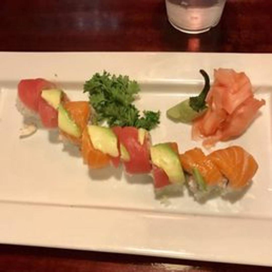 A visually appealing roll with a delicate flavor profile. Features ingredients such as tuna, salmon, avocado, and a light sauce, often garnished to resemble a cherry blossom.