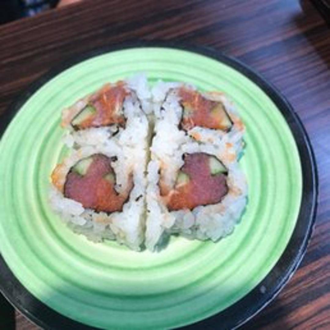 A classic sushi roll featuring fresh tuna mixed with a spicy mayonnaise-based sauce, wrapped in seaweed (nori) and sushi rice. Often includes cucumber or other vegetables for added texture and flavor. Garnished with sesame seeds. May contain varying levels of spice.