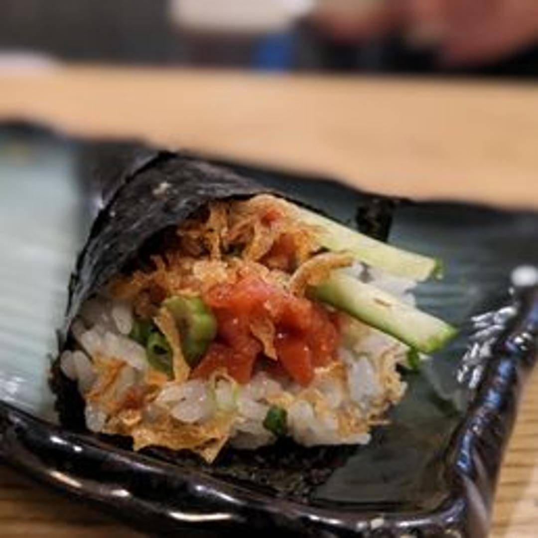 A classic sushi roll featuring chopped tuna mixed with spicy mayonnaise and chili oil, combined with cucumber and wrapped in seaweed. Expect a creamy texture and a noticeable spicy kick.