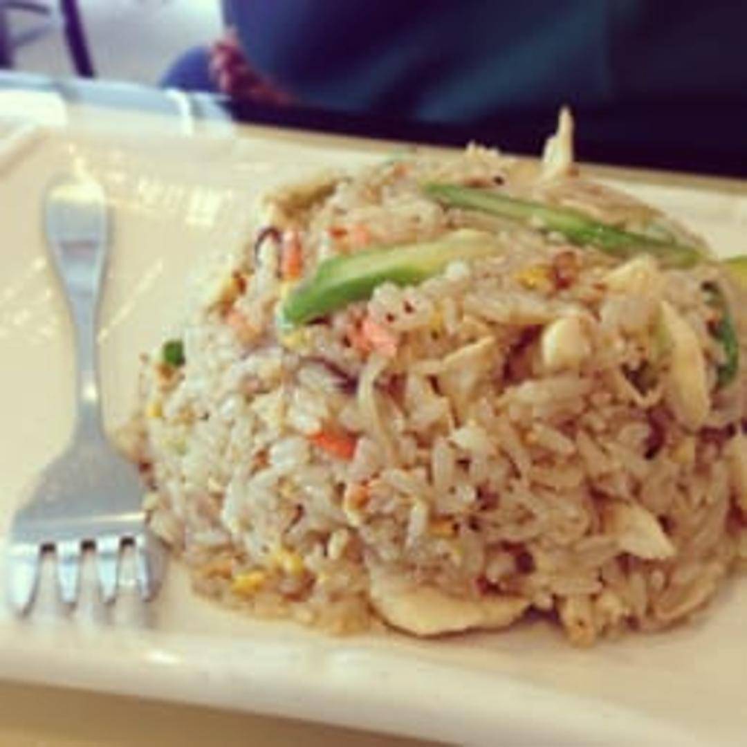 A hearty and flavorful classic, this dish features wok-fried rice expertly tossed with tender pieces of succulent chicken, scrambled egg, crisp peas, and diced carrots, all seasoned with a savory soy-based sauce for a comforting and complete meal.