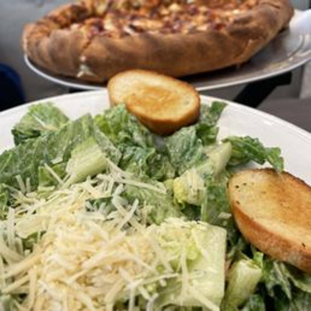 Classic Caesar salad with romaine lettuce, croutons, Parmesan cheese, and Caesar dressing.