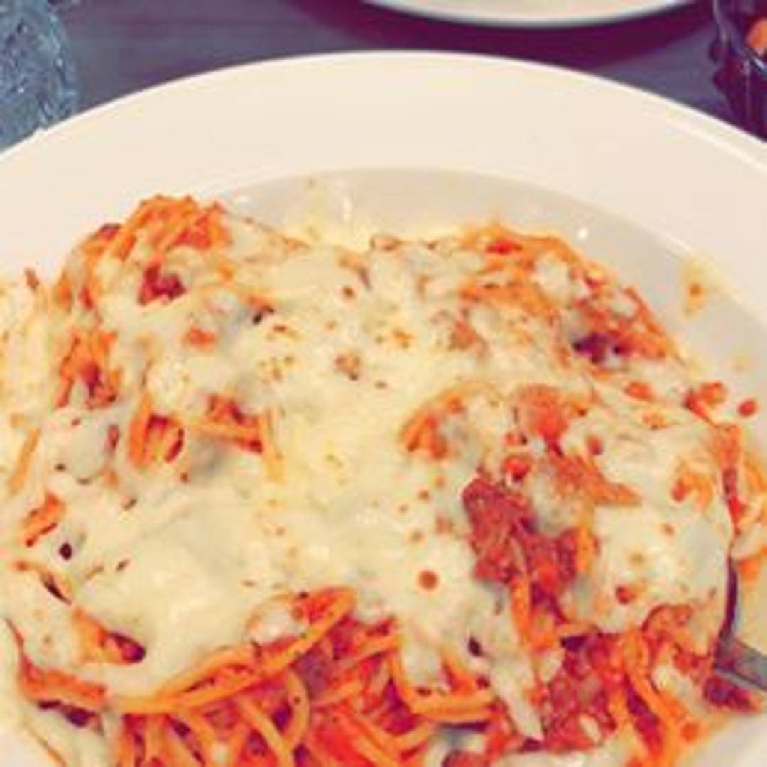 Classic Italian pasta dish with a rich meat sauce made from ground beef, tomatoes, onions, and herbs, served over spaghetti.