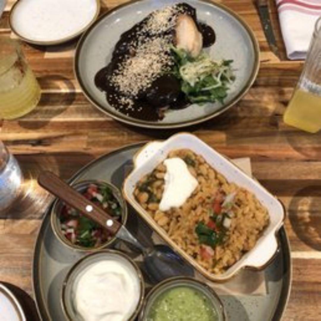 Succulent chicken bathed in a rich, complex mole sauce, crafted from an intricate blend of chiles, spices, nuts, seeds, and a hint of chocolate, delivering a deeply savory and traditional Mexican flavor.