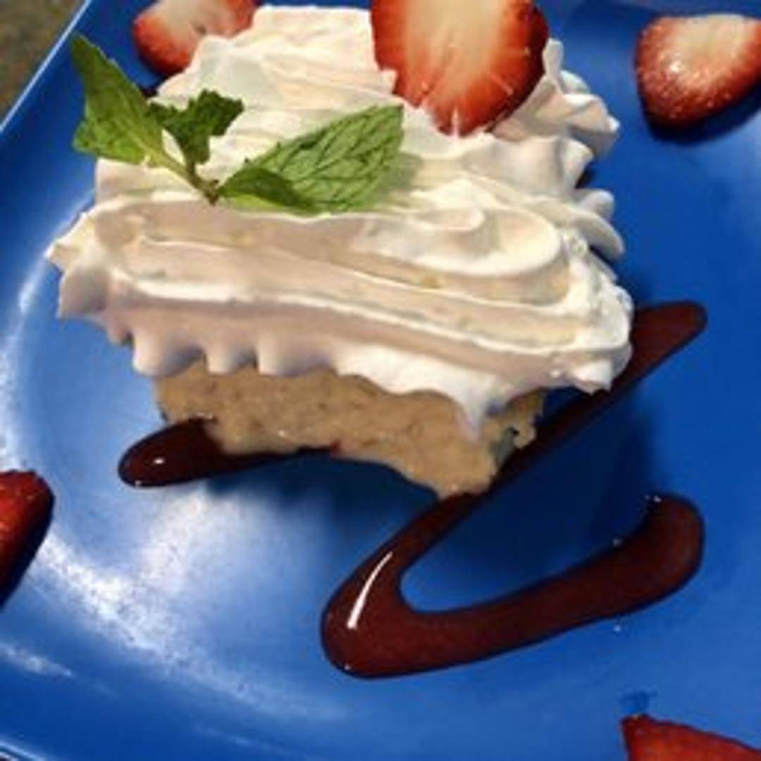 Conclude your meal with our decadent Tres Leches Cake, a beloved Latin American classic. This exquisite sponge cake is renowned for its incredibly moist and tender crumb, achieved by soaking it in a luscious blend of three milks: evaporated milk, condensed milk, and heavy cream. Each bite is a symphony of sweet, creamy, and light textures, culminating in a truly melt-in-your-mouth experience. Topped with a cloud of light, freshly whipped cream, it's the perfect sweet ending.