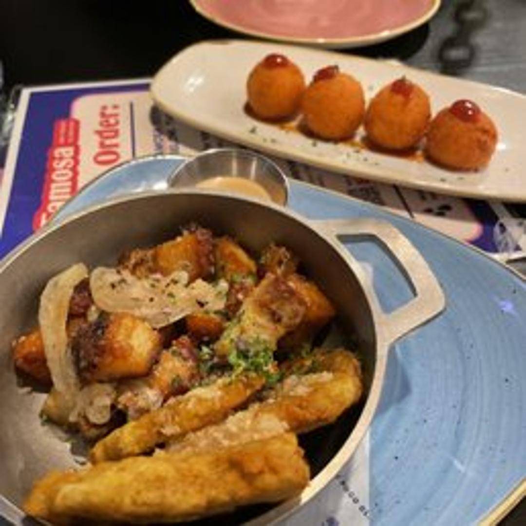 Succulent pieces of marinated pork, expertly fried until golden brown and crispy on the outside, yet tender and juicy within. A savory and irresistible Puerto Rican favorite from La Famosa, perfect for sharing or as a hearty main course.