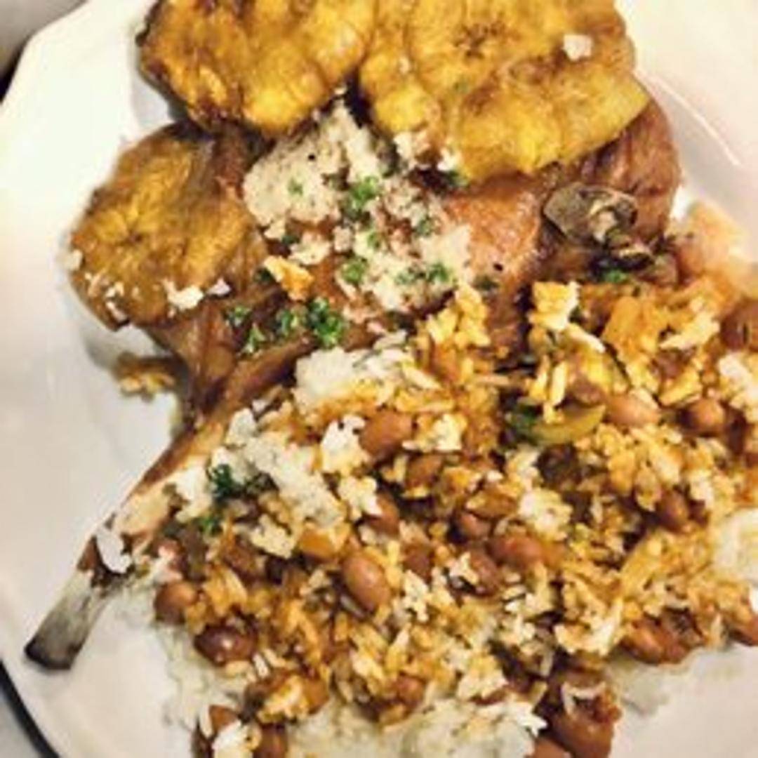 Indulge in the iconic Chuleta Kan Kan, a show-stopping Puerto Rican specialty. This impressive dish features a massive, bone-in pork chop, including a portion of the pork belly and crispy skin, meticulously fried until it achieves an incredibly crunchy exterior while remaining juicy and tender on the inside. A true feast for the senses, known for its dramatic presentation and rich flavor.