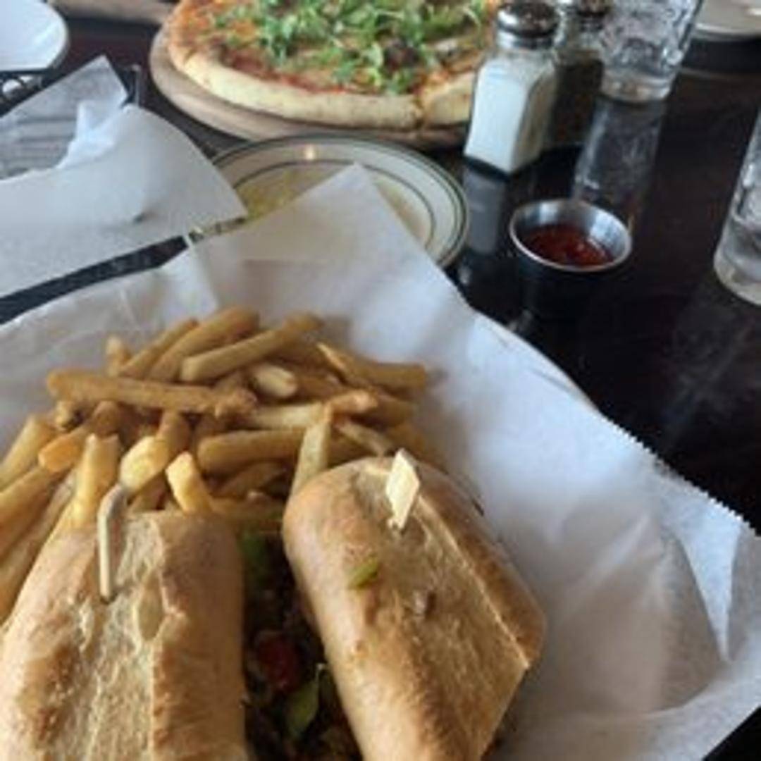 A hearty and satisfying sandwich, featuring thinly sliced, seasoned steak griddled to perfection and melted provolone cheese, all nestled in a toasted Italian hoagie roll. A perfect blend of savory flavors and satisfying textures.