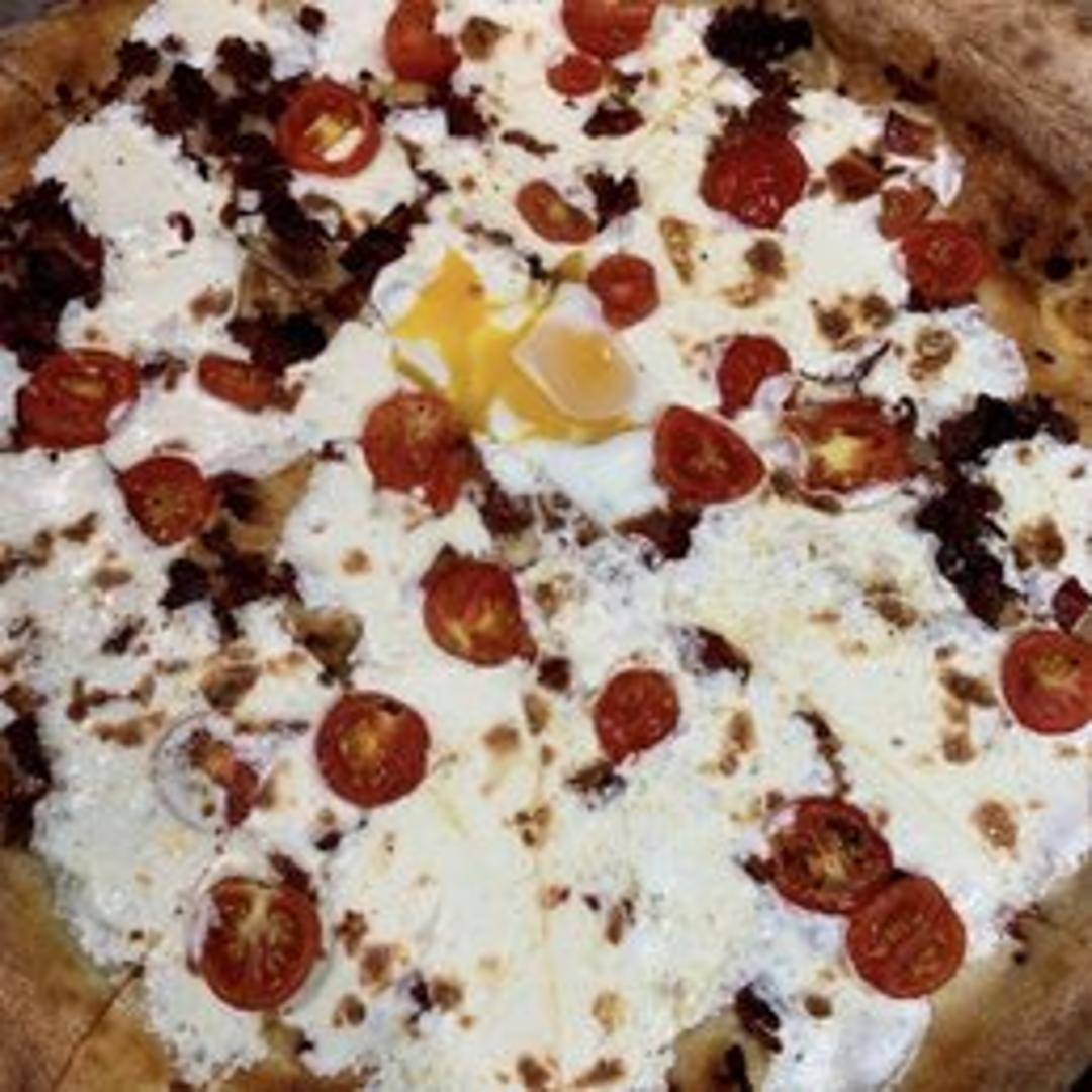An innovative take on a beloved classic, our Carbonara Pizza features a crispy crust topped with a rich and creamy sauce, smoky pancetta, a touch of egg, grated Pecorino Romano cheese, and freshly cracked black pepper, delivering the authentic flavors of carbonara in a unique pizza form.