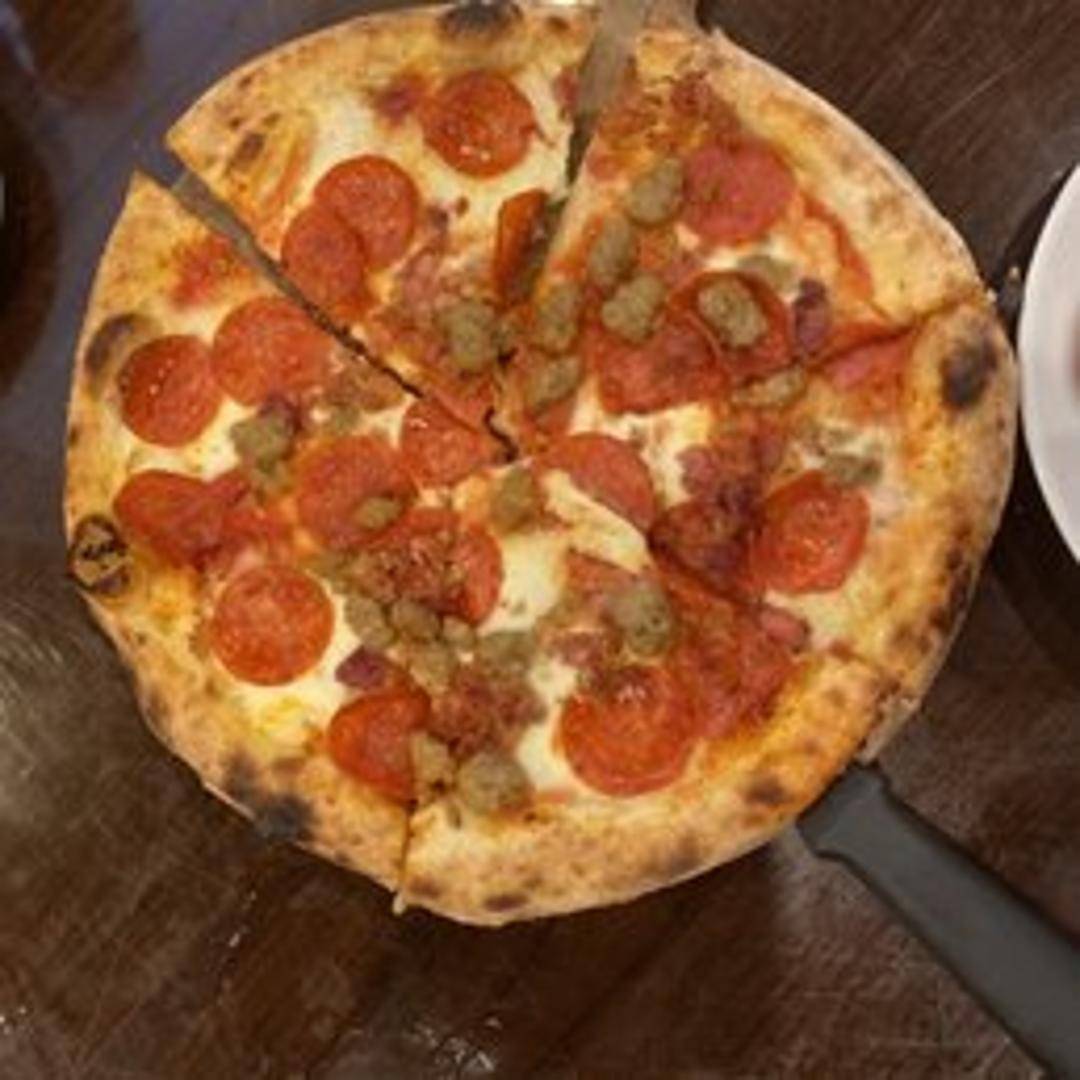 Experience our signature 'La Fiamma Pizza,' a true masterpiece crafted on our thin, perfectly crispy crust. Topped with our authentic San Marzano tomato sauce, fresh mozzarella, spicy Calabrian salami, roasted red peppers, and a drizzle of chili-infused olive oil, capturing the vibrant essence of our kitchen.