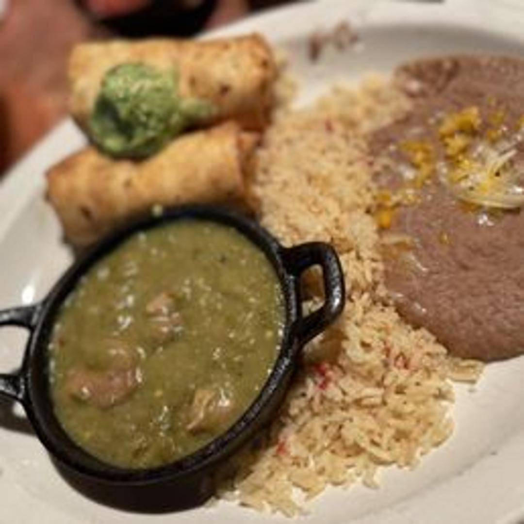 A deep-fried burrito filled with your choice of seasoned shredded chicken, beef, or beans. Topped with melted cheese, guacamole, sour cream, and pico de gallo.