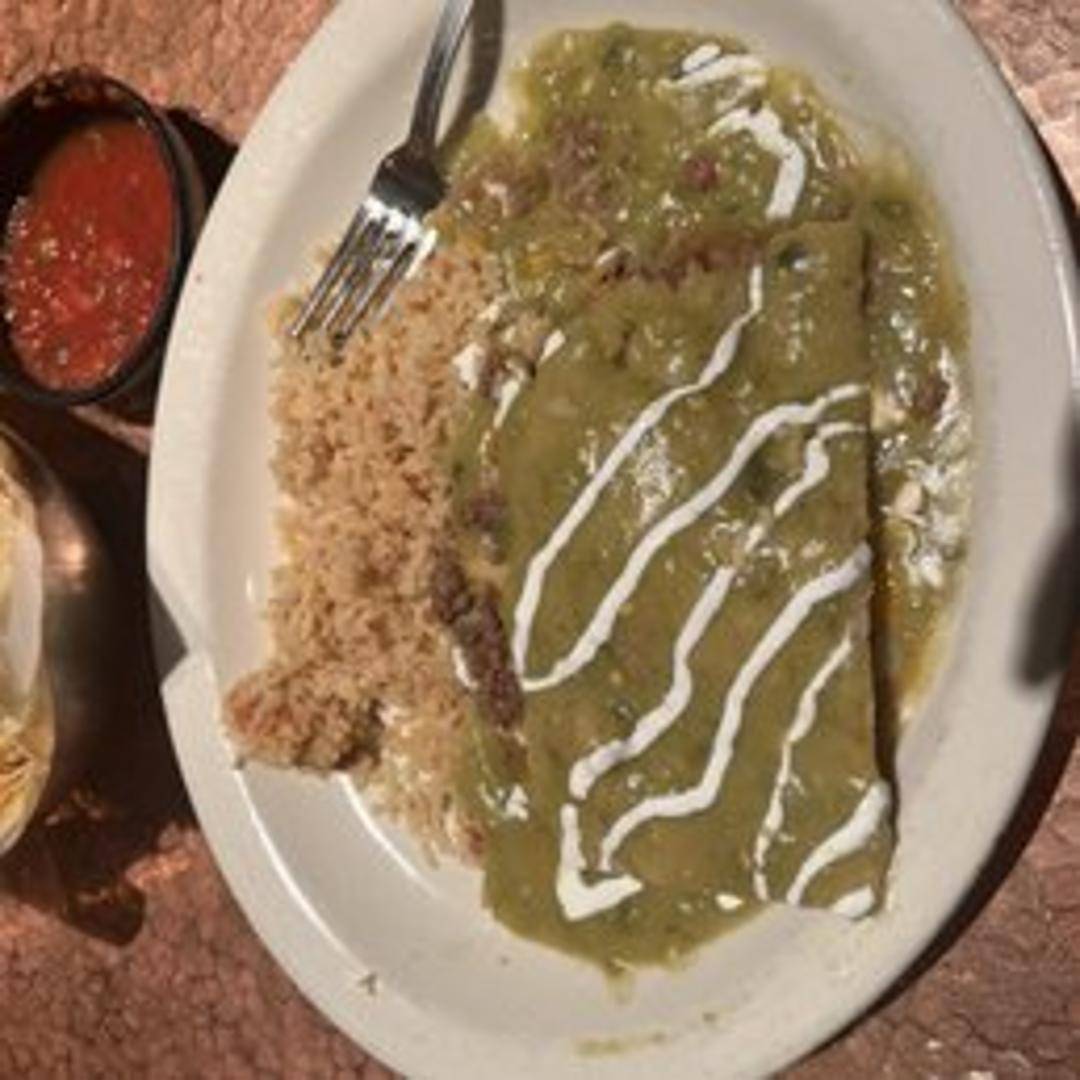 A traditional fried pastry puff filled with your choice of seasoned ground beef, chicken, or cheese. Topped with green chile, melted cheese, lettuce, and tomato.