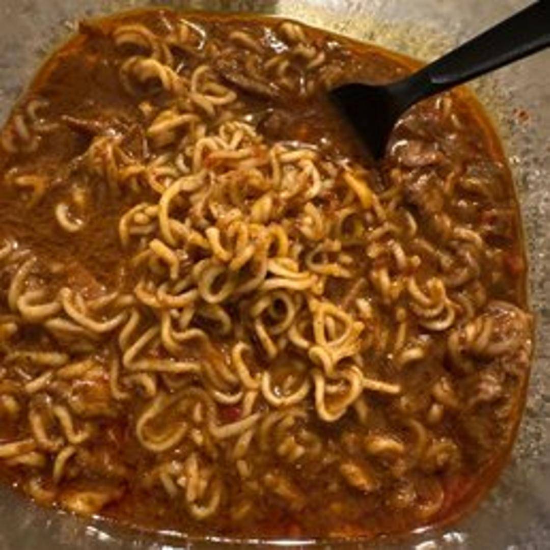 A flavorful fusion of Maruchan ramen noodles in rich, savory birria broth. Topped with tender shredded birria meat, cilantro, and onions. Served with a lime wedge.