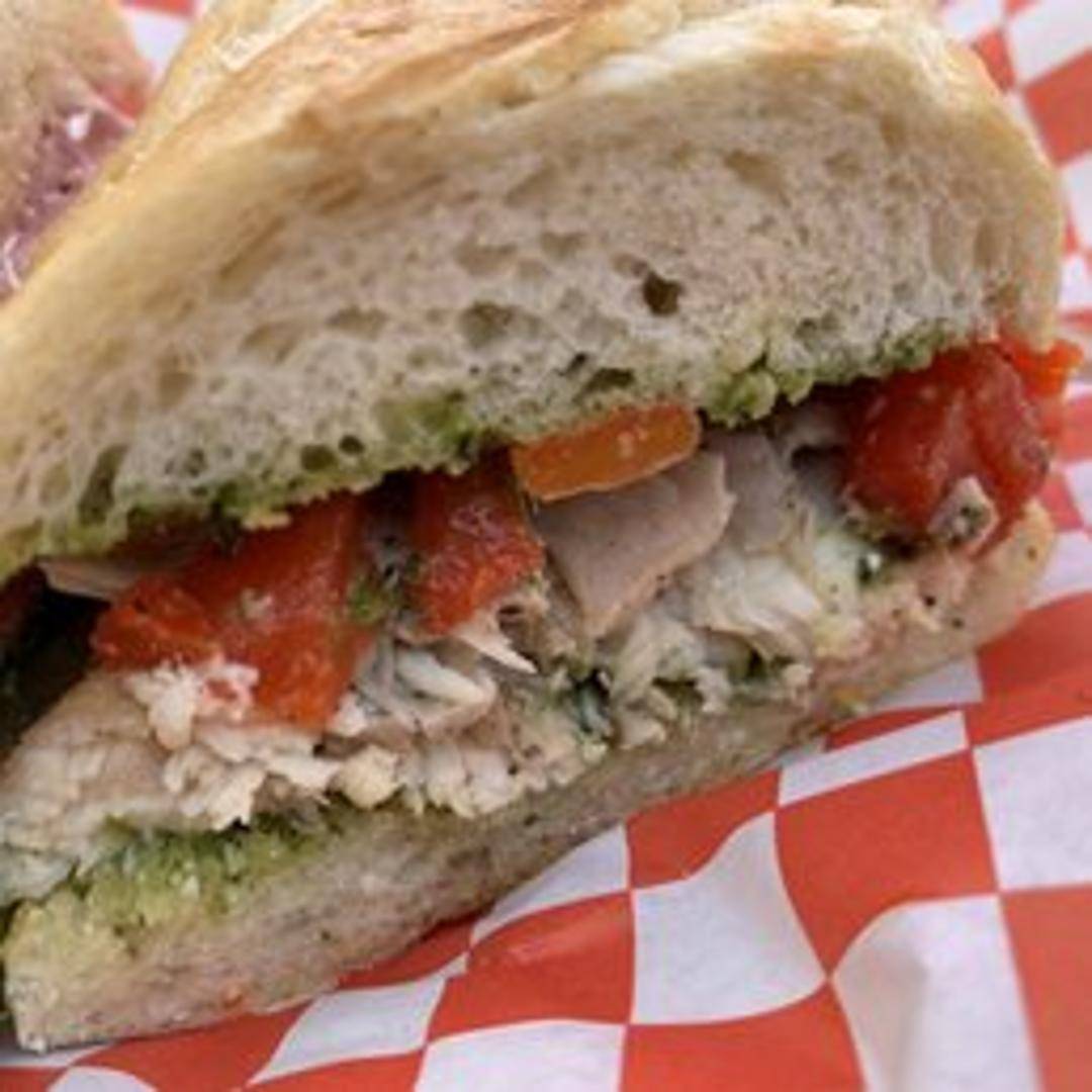 Grilled chicken breast with pesto sauce, fresh mozzarella, sliced tomato, and a touch of olive oil, served on your choice of bread.