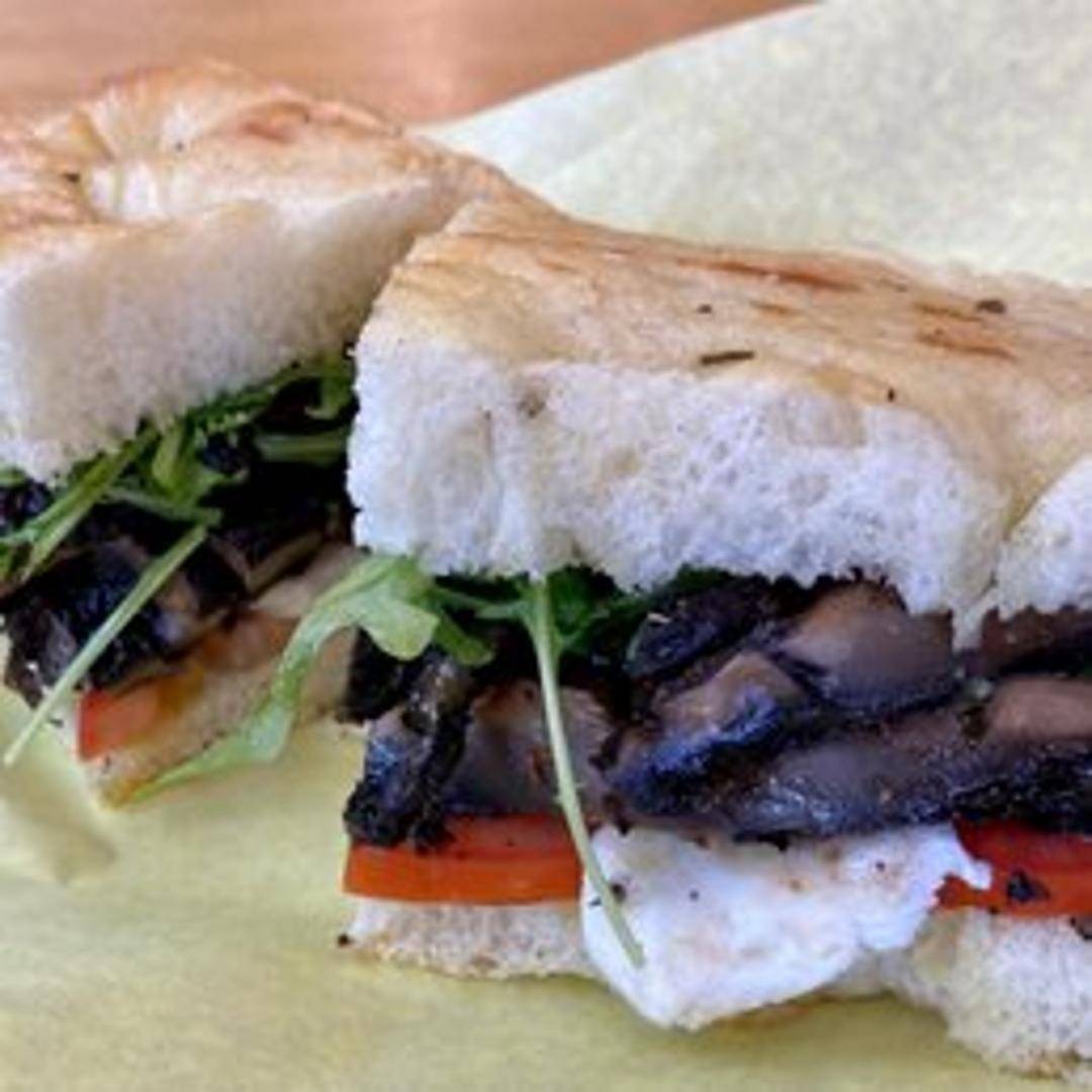 Savory focaccia topped with tender, marinated portobello mushrooms. Baked with olive oil, garlic, and aromatic herbs, creating a flavorful and satisfying sandwich or appetizer.