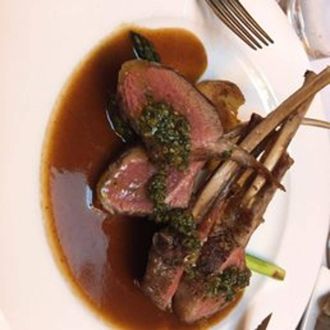 A succulent cut of lamb featuring the ribs, typically roasted or grilled to medium-rare or medium. Expect tender, flavorful meat with a slightly gamey taste. Often seasoned with herbs like rosemary and thyme and may be served with a pan sauce or mint jelly.