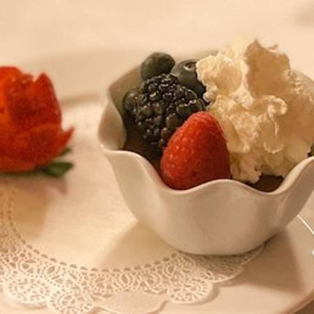 A rich and decadent chocolate custard, typically served chilled in a small pot. Expect a smooth, creamy texture and intense chocolate flavor, often with a hint of bitterness to balance the sweetness. May be garnished with whipped cream, fresh berries, or chocolate shavings.