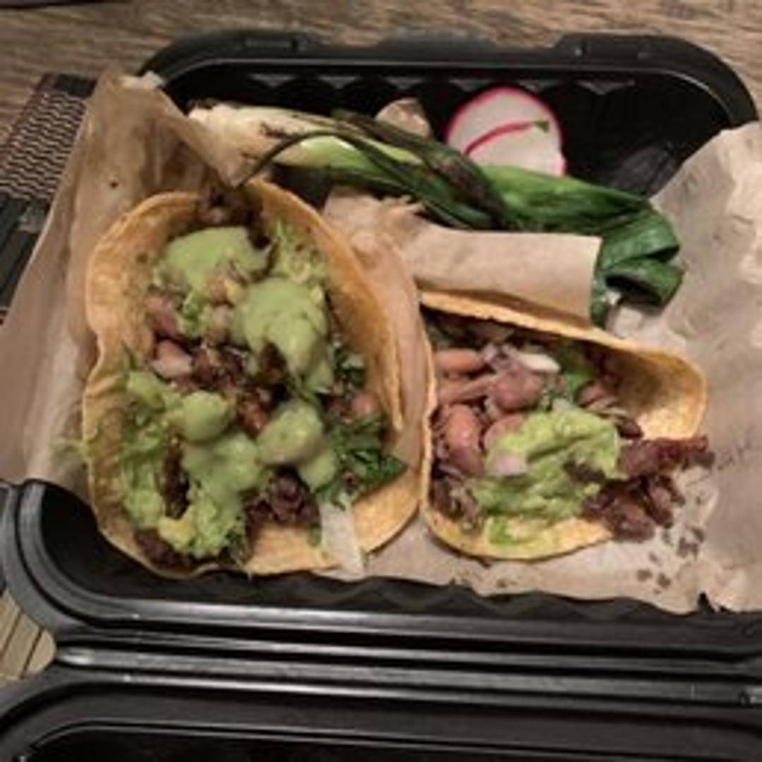 Three classic street-style tacos featuring your choice of meat, typically carne asada or al pastor, served on small corn tortillas with simple toppings like cilantro, onion, and salsa. Authentic and delicious, times three.