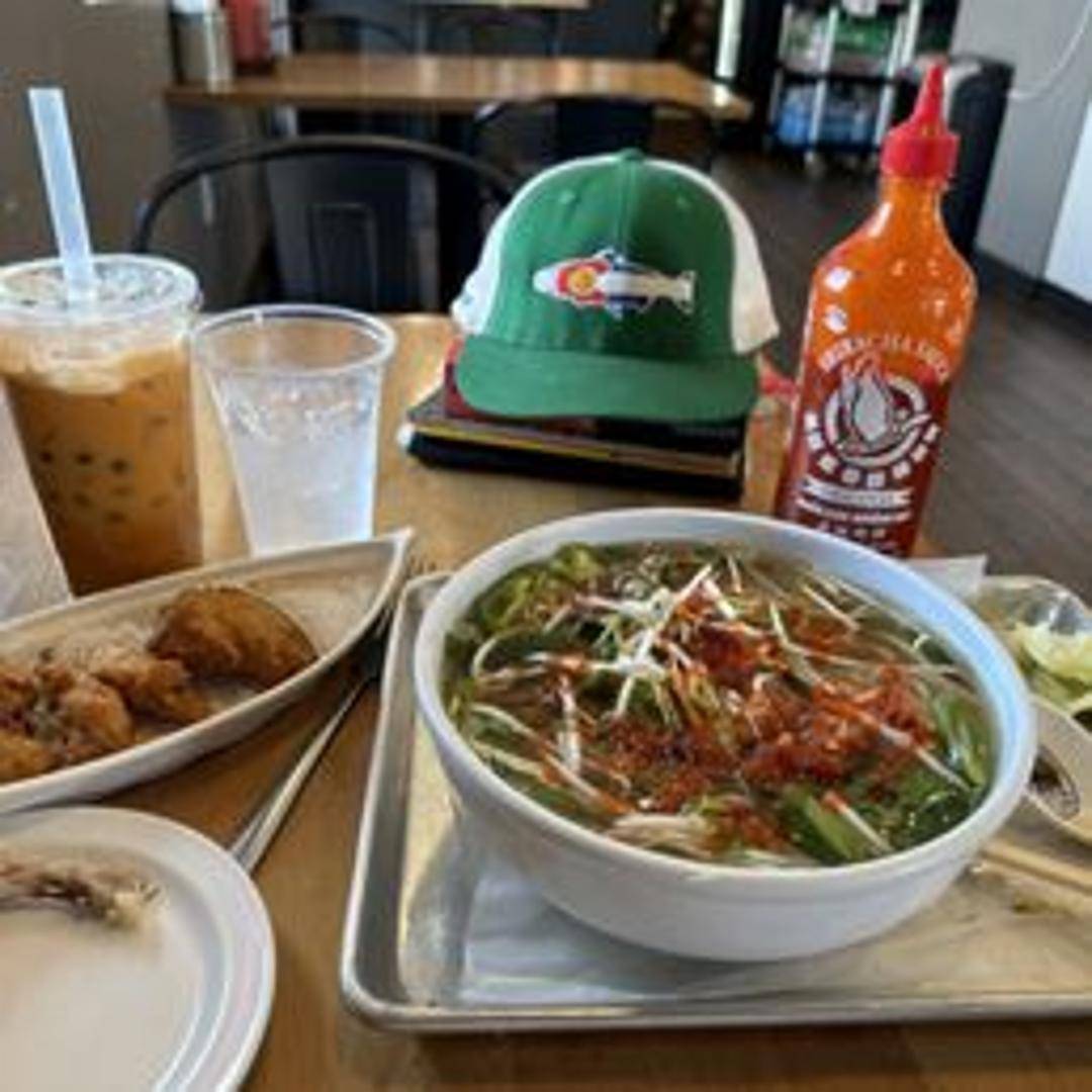 Tender slices of chicken simmered in a light and flavorful broth, served with rice noodles, fresh herbs (basil, cilantro, mint), bean sprouts, lime, and jalapenos. Hoisin and Sriracha sauce provided on the side.