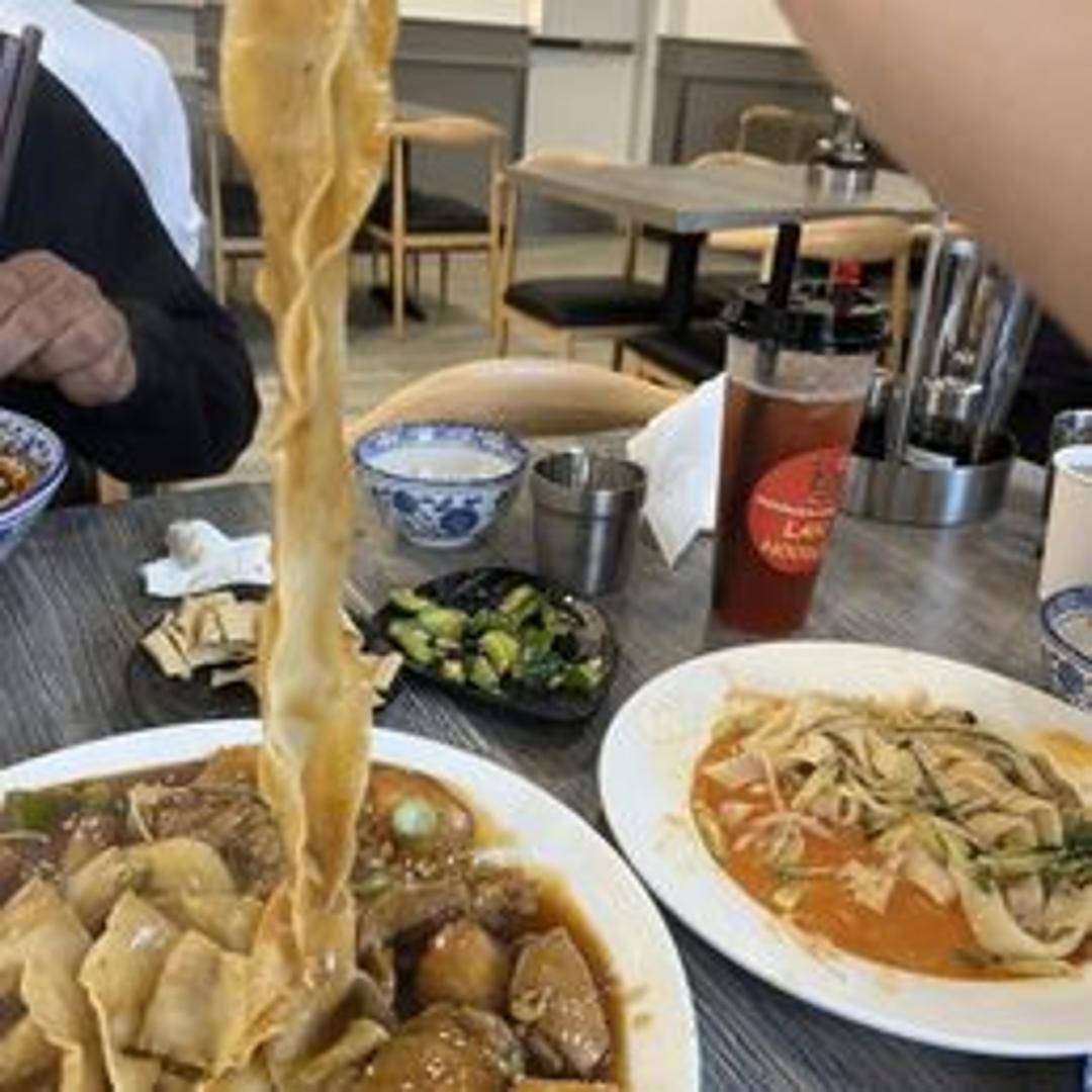 A hearty and flavorful Xinjiang-style dish consisting of bone-in chicken pieces braised in a complex sauce with potatoes, bell peppers, onions, garlic, and fragrant spices. Served with wide, hand-pulled noodles to soak up the delicious gravy. Garnished with cilantro and a sprinkle of chili flakes.