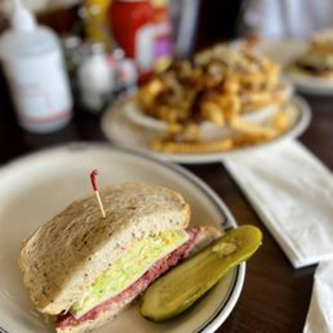 Langer's signature sandwich. Tender, hand-cut pastrami, creamy coleslaw, Swiss cheese, and Russian dressing piled high on double-baked rye bread. A culinary masterpiece renowned for its perfect balance of flavors and textures.