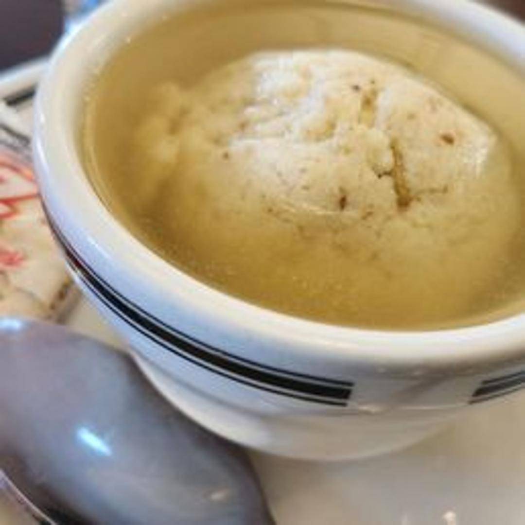 A comforting and traditional soup featuring a light and fluffy matzo ball simmered in a rich, flavorful chicken broth. A soothing and heartwarming classic.