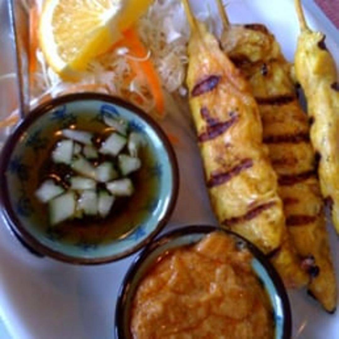 Grilled marinated chicken skewers served with a creamy peanut sauce and a refreshing cucumber salad.